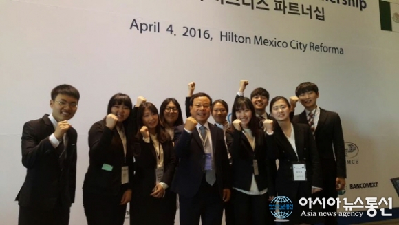 6일 국제청소년연합(회장 박문택, 이하 IYF)에 따르면 멕시코 주재 코트라에서는 박 대통령의 멕시코 순방 일정 중 4일 열린 ‘2016 한-멕 비즈니스 파트너십’ 행사를 추진하고 있었다. 이 행사에 멕시코에 온지 겨우 1달 반 정도된 해외봉사단 15기 단원들이 자원봉사를 지원하게 된 것.