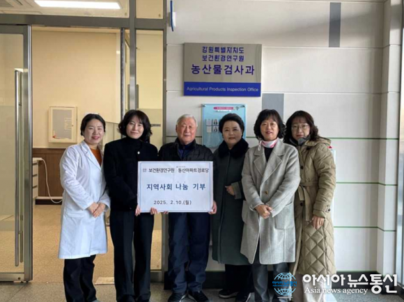 (사진제공=강원특별자치도보건환경연구원) [아시아뉴스통신=김주안 기자] 강원특별자치도보건환경연구원(이하‘연구원’)은 잔류농약 검사를 마 친 안전한 농산물을 노인복지시설에 기부하며 지역사회와 함께 따뜻한 나눔을 실천하고 있다. 연구원은 농산물도매시장과 대형마트 등에서 유통되는 농.. 2025-02-10