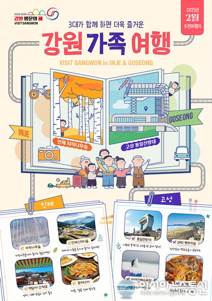 (사진제공=강원도청) [아시아뉴스통신=김종학 기자] 강원특별자치도(도지사 김진태)와 강원관광재단(대표이사 최성현)은‘2025-2026 강원 방문의 해’ 2월 추천 여행지로 인제 자작나무숲과 고성 통일전망대를 선정했다. 인제 자작나무숲은 하얀 나무줄기의 독특한 경관을 자랑하며 숲속 7개 코스의 탐방.. 2025-02-11