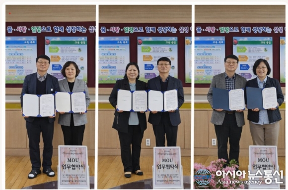 대전삼성초 학생맞춤 통합지원 업무협약식 모습./사진제공=대전교육청 [아시아뉴스통신=박희석 기자] 대전삼성초등학교는 3월 26일, 4월 8일, 4월 14일 세 차례에 걸쳐 동구정신건강복지센터, 다함께돌봄원스톱통합지원센터, 새벽지역아동센터와 각각 학생 맞춤 통합 지원 업무협약을 체결했다고 밝혔다. 이번 .. 2026-04-18
