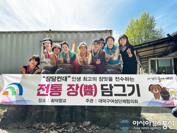 박진영 대덕구 가족친화과장(사진 오른쪽)과 안귀숙 대덕구 여성단체협의회 회장(사진 왼쪽 네 번째), 대덕구 주민들이 16일 회덕향교에서 ‘장 가르기(뜨기) 행사를 마친 후 기념 촬영을 하고 있다./사진제공=대덕구 [아시아뉴스통신=박희석 기자] 대전 대덕구는 16일 대덕구 여성단체협의회가 주민들이 손끝으.. 2026-04-17