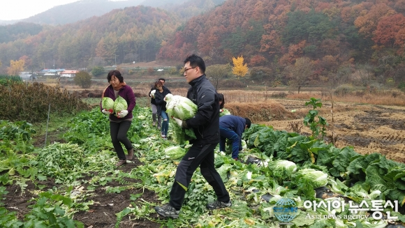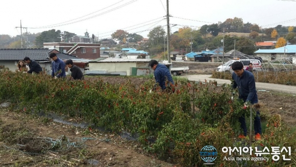 충남 아산시 자치행정과는 10일 자매결연 마을인 송악면 거산1리(이장 석명호)를 찾아 농촌일손돕기 봉사활동을 펼쳤다.(사진제공=아산시청) 충남 아산시 자치행정과는 10일 자매결연 마을인 송악면 거산1리(이장 석명호)를 찾아 농촌일손돕기 봉사활동을 펼쳤다. 자치행.. 2015-11-11