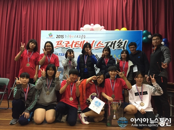 대전용운중학교는 ‘2015학년도 전국학교스포츠클럽 프리테니스 대회’ 여중부 복식 경기에서 준우승을 차지했다.(사진제공=대전운용중학교) 대전용운중학교(교장 김혜숙)는 지난 7일부터 8일까지 전북 전주시 일원에서 열린 ‘2015학년도 전국학교스포츠클럽 프.. 2015-11-11