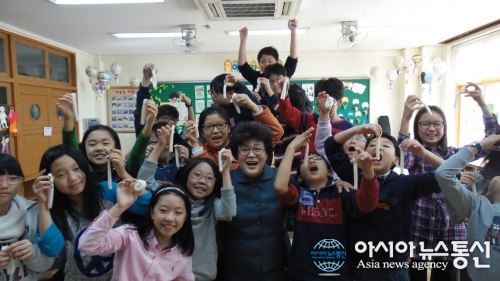 11일 대덕초등학교는 전교생이 벼 기르기로 수확한 쌀로 만든 가래떡을 먹는 ‘가래떡을 나눠먹는 날' 행사를 개최했다. 사진은 가래떡을 들고 즐거워 하는 학생들의 모습.(사진제공=대덕초등학교) 대전대덕초등학교(교장 이금숙)는 11일 전교생 657명이 친환경 벼 .. 2015-11-11