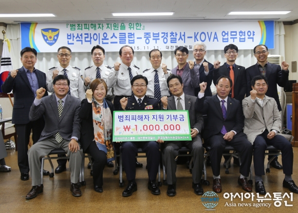 11일 대전중부경찰서는 반석라이온스클럽 및 한국피해자지원협회와 범죄피해자 지원을 위한 업무협약을 체결했다. 이번 업무협약은 기관간의 나눔문화에 대한 사회공헌네트워크 공감대가 형성돼 이룬 성과로 반석라이온스 클럽 기부금은 한국피해자지원협회에 지원해 범죄피해자에 대.. 2015-11-11