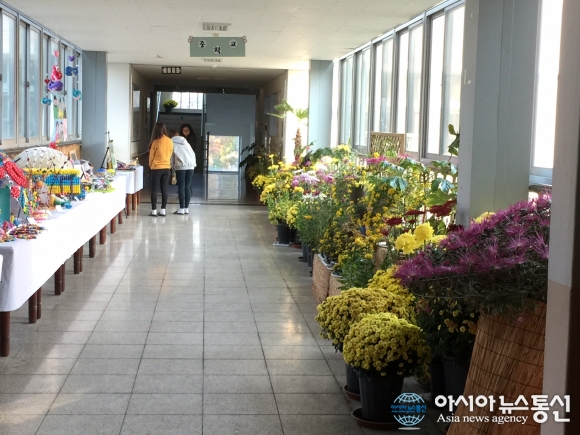 충남 천안인애학교는 3일부터 본관에서 국화 전시와 함께 학급특색작품 및 직업교육활동 결과물에 대한 전시회를 연다.(사진제공=천안교육지원청) 충남 천안인애학교(교장 한상경)는 3일 오는 6일까지 본관 2층과 2층 중앙복도에서 국화 전시와 함께 학급특색작품 및 직업교.. 2015-11-03