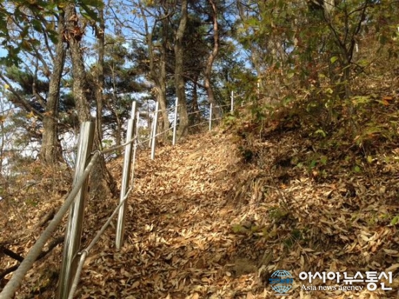 충남 천안시는 취암산에서 개죽산으로 이어지는 독립종주로 정비사업을 모두 마쳤다.(사진제공=천안시청) 충남 천안시는 취암산과 흑성산에서 시작해 태조산, 성거산, 위례산, 부조산 등으로 이어지는 일명 독립종주로 정비사업 중 북면 개죽산 2.36㎞ 구간 정비를 완료했다.. 2015-11-03