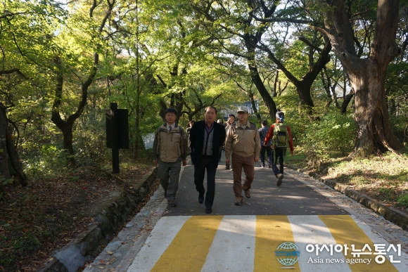 국립공원관리공단 박보환 이사장이 계룡산국립공원 관계자들과 함께 계룡산 주요사업 현장을 둘러보고 있다. (사진= 계룡산국립공원사무소 제공) 계룡산국립공원사무소는 박보환 이사장이 최근 계룡산국립공원을 방문해 정석원 소장으로부터 2015년 주요사업 추진현황을 .. 2015-11-02