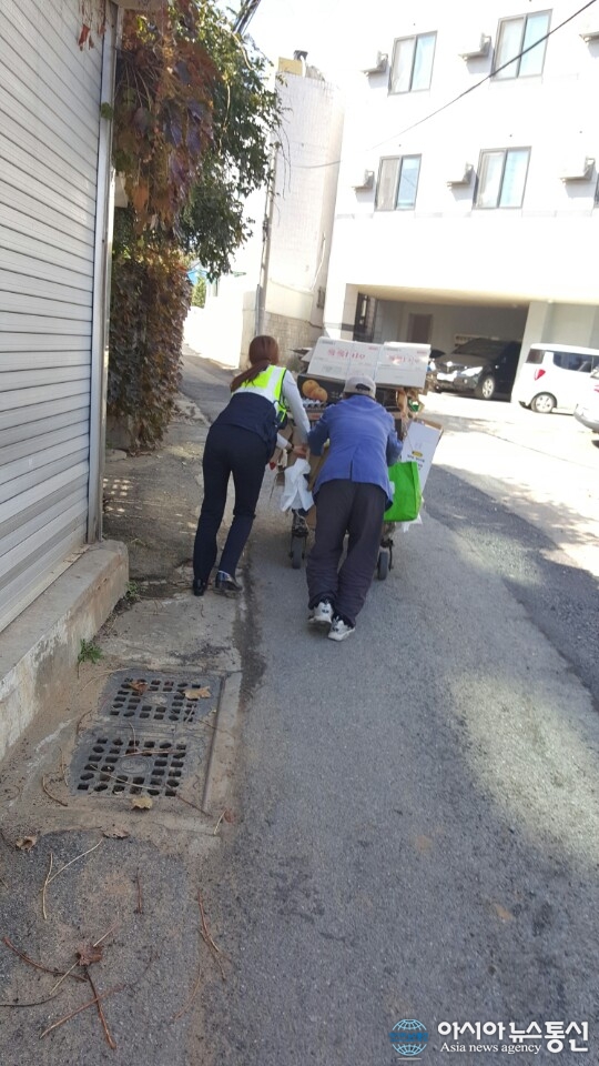 80대 노인이 폐지를 가득 실고 고갯길을 힘겹게 올라가는 리어카를 뒤에서 밀어주는 김지율 순경 (사진제공= 서산경찰서) 어느 순경이 사회적 약자를 위해 값진 땀방울을 흘린 선행이 뒤늦게 밝혀져 훈훈한 미담이 되고 있다. 주인공은 충남 서산경찰서 서부지구대에 근무하.. 2015-11-02