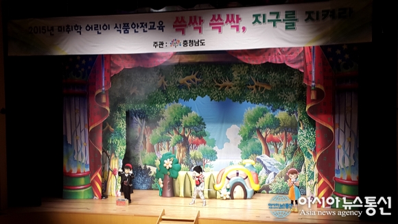 지난달 30일 충남도 주관, 계룡시가 주최한 '쓱싹쓱싹 지구를 지켜라' 식품안전 교육 인형이 펼쳐지고 있다.(사진제공=계룡시) 계룡시(시장 최홍묵)는 지난달 30일 계룡문화예술의전당에서 관내 미취학 어린이 800여 명을 대상으로 식품안전 교육의 일환으로 ‘쓱싹.. 2015-11-02