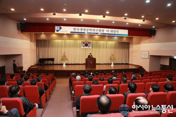 2일 장규태 한국생명공학연구원 신임 원장이 취임식을 갖고 취임 소감및 각오를 밝히고 있다. 이 자리에서 장 원장은 “생명연의 경영 가치관은 ‘안전하고 행복한 무병장수의 꿈’ 실현”이라면서 “바이오 핵심원천 기술의 연구성과를 창출하고 국가 사회적 현안을 해결하.. 2015-11-02