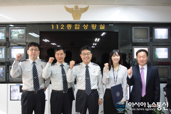 이문국 충남 천안서북경찰서장(가운데)은 2일 '112 데이' 를 맞아 112종합상황실 근무자들을 방문해 격려했다. 사진 왼쪽부터 이재운 상황실장, 전우상 경감, 이문국 서장, 임수정 순경, 신기수 정보보안과장.(사진제공=천안서북경찰서) 이문국 충남 천안서북경찰서장은 .. 2015-11-02