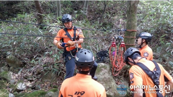 2일 논산소방서(서장 류봉희)는 대둔산 수락계곡 일원에서 민간산악구조대와 함께 합동산악구조훈련을 실시했다. 훈련에 참여한 대둔산 민간산악구조대 민순호 대원은 “갑자기 등산과 같은 과격한 신체 활동을 할 경우 하체가 약화된다”며 안전수칙 준수를 당부했다. 사진은 논산소.. 2015-11-02