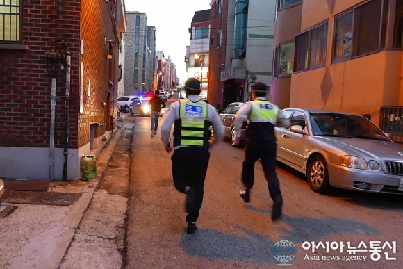 대전둔산경찰서는 현장 대응 능력 향상을 위한 강력 범죄 대응 FTX를 실시했다. 사진은 경찰이 가상 범인을 쫓아가고 있다.(사진제공=대전둔산경찰서) 대전둔산경찰서(서장 김기용)는 지난달 30일 서구 갈마동 일원에서 11월 2일 ‘112의 날’을 맞아 112상황실과 지역경.. 2015-11-01