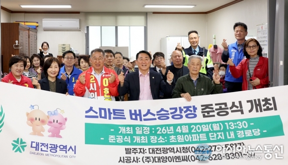 스마트 승강장./사진제공=대전시 [아시아뉴스통신=박희석 기자] 대전시는 서구 만년동 초원아파트 정류장을 첨단 기술과 편의시설을 결합한 스마트 승강장으로 새롭게 단장하고 20일 지역 주민들이 참여한 가운데 현장점검 및 개통 행사를 열어 본격적인 운영에 들어간다고 밝혔다. 이번 스마트 승강장 설치는 .. 2026-04-20