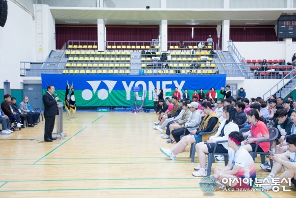 최민호 세종시장이 28일 세종시민체육관에서 열린 '제5회 세종시장배 겸 전국 스페셜장애인배드민턴대회'에서 인사말을 하고 있다./사진제공=세종시 [아시아뉴스통신=박희석 기자]세종시가 28일부터 29일까지 2일간 조치원 세종시민체육관에서 열린 ‘제5회 세종시장배 겸 전국 스페셜(SPECIAL)장애인배드.. 2026-03-29
