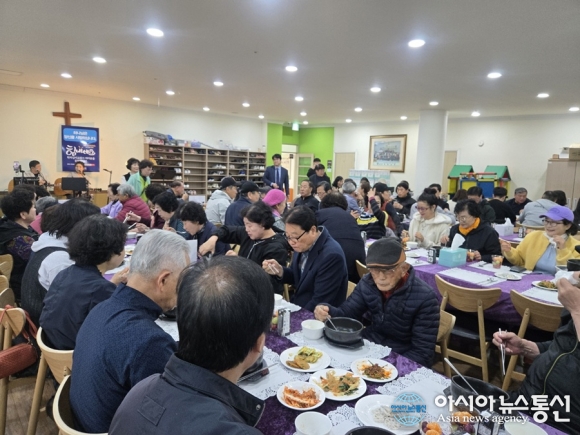 27일 진행된 ‘어르신 식사 나눔 행사’ 모습./사진제공=유성구 [아시아뉴스통신=박희석 기자] 대전 유성구는 27일 학하동 학하감리교회(목사 임요한)가 ‘어르신 식사 나눔 행사’를 개최했다고 밝혔다. 이번 행사에서는 독거 어르신, 경로당 어르신, 마을 봉사자 등 100여 명에 직접 준비한 점심을 .. 2026-03-29