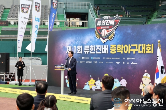 대전시의회 조원휘 의장은 25일 제1회 류현진배 우수초청 중학야구대회에 참석해 대회의 출발을 함께 축하했다./사진제공=대전시의회 [아시아뉴스통신=박희석 기자] 대전시의회 조원휘 의장은 25일 제1회 류현진배 우수초청 중학야구대회에 참석해 대회의 출발을 함께 축하했다. 이번 대회는 현역 프로야구 선.. 2026-03-25