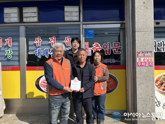 착한가게 현판 전달 모습./사진제공=세종시 [아시아뉴스통신=박희석 기자] 세종시 소정면지역사회보장협의체가 25일 소정면 소재 민들레 재가노인복지센터와 대박식당을 방문해 ‘사랑의열매 착한가게’현판을 전달했다. 착한가게는 매출액의 일정액을 어려운 이웃을 위해 정기 기부하기로 약정한 중소.. 2026-03-26