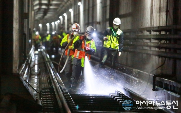대전교통공사는 봄철 미세먼지 시즌을 맞아 최상의 공기질 관리를 위해 터널 내 물청소를 시작했다./사진제공=대전교통공사 [아시아뉴스통신=박희석 기자] 대전교통공사가 시민 건강 보호와 쾌적한 대중교통 이용 환경 조성을 위해 도시철도 본선 터널 전 구간에 대한 대대적인 물청소 작업을 시작했다고 24일 밝.. 2026-03-24