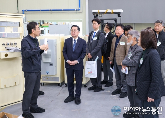 이장우 대전시장이 24일 유성구 전민동에 소재한 한빛레이저를 방문해 생산기업어려움을 청취하고 있다./ 사진제공=대전시 [아시아뉴스통신=박희석 기자] 대전시는 24일 유성구 전민동에 소재한 한빛레이저를 방문해 생산 현장을 시찰하고, 중소기업이 직면한 어려움과 요구사항을 직접 청취하는 ‘기업현장.. 2026-03-24