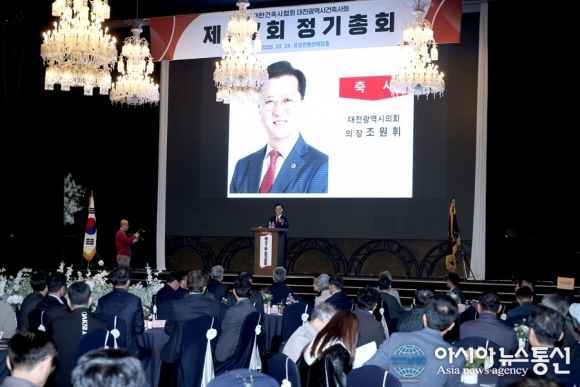 대전시의회 조원휘 의장은 24일 대전시 건축사회 제37회 정기총회에 참석해 축사를 하고 있다./사진제공=대전시의회 [아시아뉴스통신=박희석 기자] 대전시의회 조원휘 의장은 24일 대전시 건축사회 제37회 정기총회에 참석해 주요 사업 성과를 공유하고 지역 건축문화 발전 방향을 논의했다. 이번 총회에는 대전.. 2026-03-24