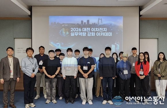 대전테크노파크(대전TP)는 지난 16일부터 17일까지 양일간 한국원자력연구원에서 ‘2026년 대전 이차전지 실무역량 강화 아카데미’를 성공적으로 개최하고 기념촬영을 하고 있다./사진제공=대전테크노파크 [아시아뉴스통신=박희석 기자] 대전테크노파크(대전TP)는 지난 16일부터 17일까지 양일간 한국원자력.. 2026-04-20