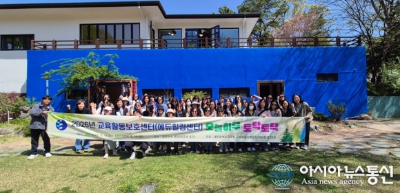 ‘오늘 하루 토닥토닥’ 프로그램 운영 기념촬영 모습./사진제공=대전교육청 [아시아뉴스통신=박희석 기자] 대전시교육청 교육활동보호센터는 지난 18일 충북 충주시 소재 깊은 산속 옹달샘에서 유·초·중·고·특수·각급 학교 및 교육기관 소속 교직원 40명을 대상으로 ‘오늘 하.. 2026-04-20
