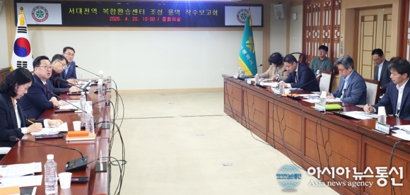 이장우 대전시장이 ‘서대전역 복합환승센터 조성’기본계획 수립 용역‘ 착수보고회를 주재하고 있다./사진제공=대전시 [아시아뉴스통신=박희석 기자] 대전시는 20일 이장우 대전시장과 관련 실·국장을 비롯해 국가철도공단, 한국철도공사 등 유관기관 관계자들이 참석한 가운데 ‘서대전역 .. 2026-04-20