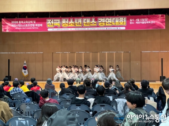 2026 충북교육감배 겸 제천시댄스스포츠연맹회장배 전국 청소년 댄스경연대회 제천에서 성황리 마무리./사진제공=제천시청 [아시아뉴스통신=장하영 기자] 제천시에서 개최된 「2026 충북교육감배 겸 제천시댄스스포츠연맹회장배 전국 청소년 댄스경연대회」가 전국 청소년들의 뜨거운 열기 속에 성황리에 마무.. 2026-04-14