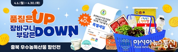 온라인 쇼핑몰 ‘온충북’ , 우수농특산물 기획전./사진제공=충북도청 [아시아뉴스통신=장하영 기자] 충북도가 온라인 쇼핑몰 ‘온충북’을 통해 도내 우수 농특산물을 한자리 에서 만나볼 수 있는 기획전을 4월 6일부터 4월 30일까지 개최한다. 이번 기획전은 충북도가 직접 인증한 농축산물과 가.. 2026-04-06