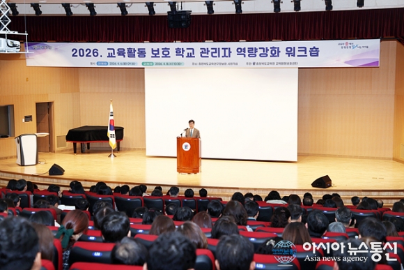 2026년 교육활동 보호 학교관리자 워크숍./사진제공=충북교육청 [아시아뉴스통신=장하영 기자] 충청북도교육청(교육감 윤건영)은 6일(월), 교육연구정보원에서 유‧초‧중‧고‧특수‧각종학교 교(원)감 500여 명을 대상으로 <2026년 교육활동 보호 학교관리자 워크숍>을 운영했다. 이번 워크숍은 교육공동체 .. 2026-04-06