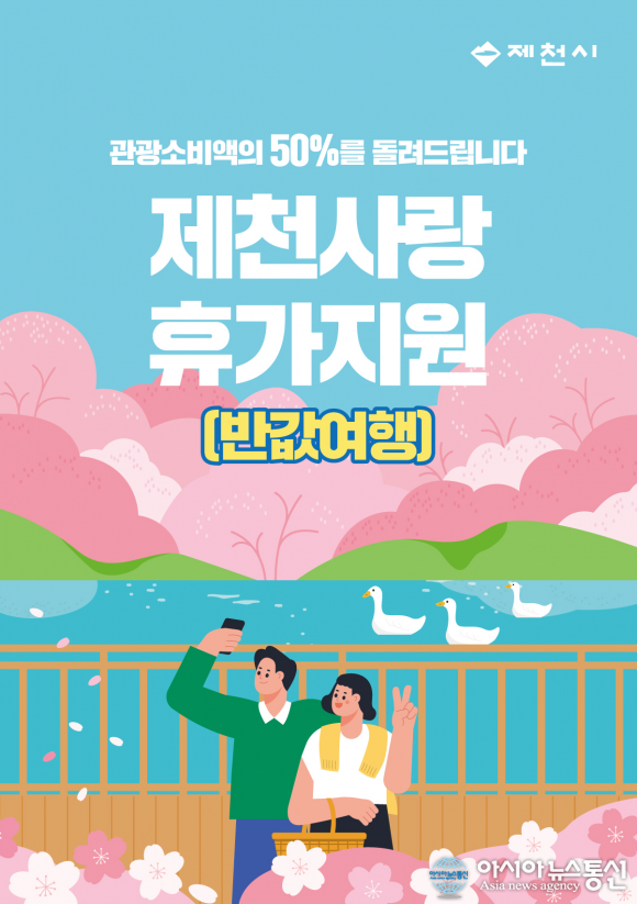 제천사랑 휴가지원 홍보물./사진제공=제천시청 [아시아뉴스통신=장하영 기자] 제천시가 봄철 관광시즌을 맞아 지역 대표 관광자원과 체류형 관광상품을 연계하며 관광객 유치를 위한 적극적인 정책 추진에 나섰다. 시는 의림지와 청풍호를 중심으로 한 경관자원에 한방·치유·미식·체험 요소를 .. 2026-04-03