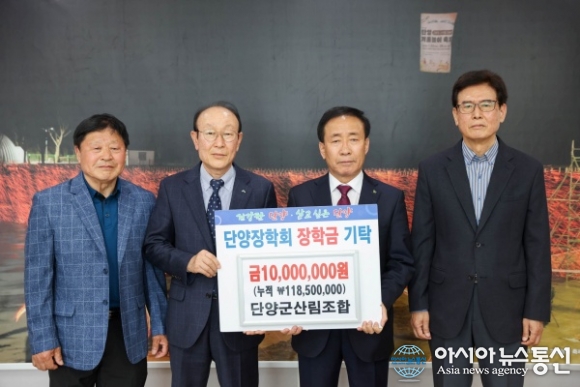 단양군산림조합, 단양장학회에 장학금 1천만 원 기탁./사진제공=단양군청 [아시아뉴스통신=장하영 기자] 단양군산림조합이 지역 인재 육성을 위한 장학금 기탁을 이어가며 지역사회에 훈훈함을 더하고 있다. 군에 따르면 단양군산림조합은 지난 27일 군수실을 방문해 단양장학회에 장학금 1천만 원을 기탁했다.. 2026-03-30