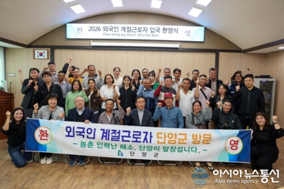 단양군, “멀리서 와줘서 고맙습니다”…외국인 계절근로자 538명 입국./사진제공=단양군청 [아시아뉴스통신=장하영 기자] 단양군이 본격적인 농번기를 앞두고 외국인 계절근로자 538명을 맞으며 농촌 현장에 활력을 불어넣고 있다. 군은 지난 26일 매포읍 단양군 농업인복지회관에서 계절근로자와 고.. 2026-03-30