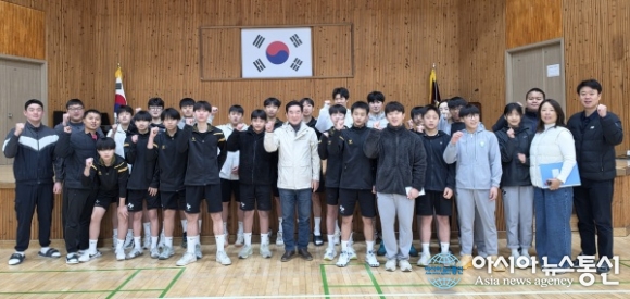 증평군체육회, 충북소년체육대회 증평군선수단 격려./사진제공=증평군청 [아시아뉴스통신=장하영 기자] 충북 증평군체육회가 제55회 충북소년체육대회를 앞두고 19일 지역 학생 선수단 응원에 나섰다. 이날 군체육회는 증평초, 삼보초, 죽리초, 도안초, 증평중, 증평여중, 형석중 등을 순차적으로 방문해 대회.. 2026-03-19