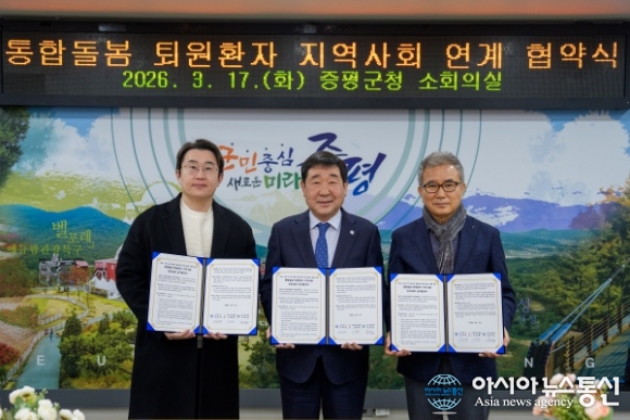 증평군, 퇴원환자 의료·돌봄 공백‘Zero’의료기관과 맞손./사진제공=증평군청 [아시아뉴스통신=장하영 기자] 충북 증평군은 17일 군청 소회의실에서 예미담요양병원, 괴산성모병원과 ‘퇴원환자 지역사회 연계의뢰’를 위한 업무협약을 체결했다. 이번 협약은 병원에서 퇴원한 군민들이 가.. 2026-03-17
