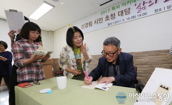 2017년 故 신경림 시인 초청 대담회 모습./아시아뉴스통신 DB [아시아뉴스통신=장하영 기자] 충주시는 충주시립도서관 구관인 충주문학관 1층에 충주 출신의 대표 시인인 故 신경림 시인(1936~2024)을 기리는 기념 공간을 조성했다고 지난 16일 밝혔다. 故 신경림 시인은 「농무」,「가난한 사랑 노래」 등 농민의 .. 2026-03-17
