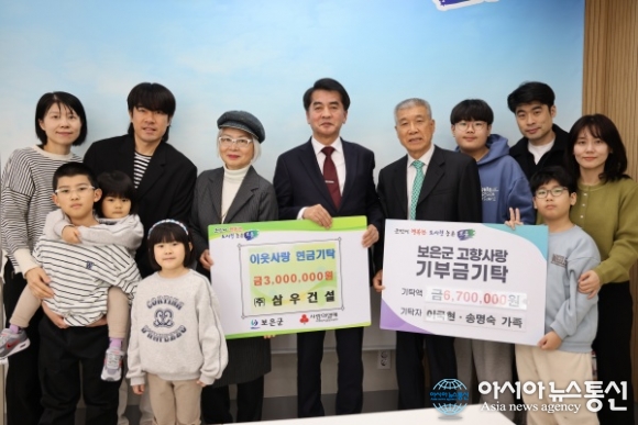 ㈜삼우건설 이국현 대표 가족, 보은군에 고향사랑기부금·이웃돕기 성금 기탁./사진제공=보은군청 [아시아뉴스통신=장하영 기자] ㈜삼우건설 이국현 대표 가족이 지난 16일 보은군청을 방문해 고향사랑기부금과 이웃돕기 성금을 기탁했다. ㈜삼우건설은 보은군 탄부면에 소재한 지역 건설업체로, 이날 .. 2026-03-17