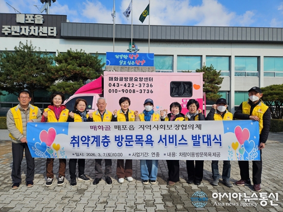 취약계층 방문목욕서비스 발대식./사진제공=단양군청 [아시아뉴스통신=장하영 기자] 단양군 매포읍지역사회보장협의체가 거동이 불편한 주민들을 위한 ‘찾아가는 방문목욕서비스’ 운영에 나선다. 이번 방문목욕 서비스에는 매포읍지역사회보장협의체를 비롯해 청년회, 여성단체협의회, 매화봉사단 .. 2026-03-11