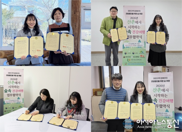 2026년 숲체험교육 업무협약식./사진제공=제천시청 [아시아뉴스통신=장하영 기자] 제천장애인종합복지관(관장 오재원)은 취약계층의 삶의 질 향상을 위한 숲체험교육 지원사업 업무협약을 체결했다. 이번 업무협약은 지난 2월 25일부터 3월 5일까지 2주간 기관별 현장을 직접 방문하는 ‘찾아가는 업무협약식.. 2026-03-11