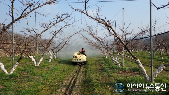 월동 병해충 방제./사진제공=옥천군청 [아시아뉴스통신=장하영 기자] 옥천군농업기술센터(소장 유정용)는 복숭아 개화기를 앞두고 월동 병해충 적기 방제를 위한 현장 기술지도를 강화하고 있다. 최근 봄철 기온 변동 폭이 커지면서 세균구멍병, 탄저병 등 월동 병해충의 조기 발생 가능성이 높아지고 있다. 이.. 2026-03-10