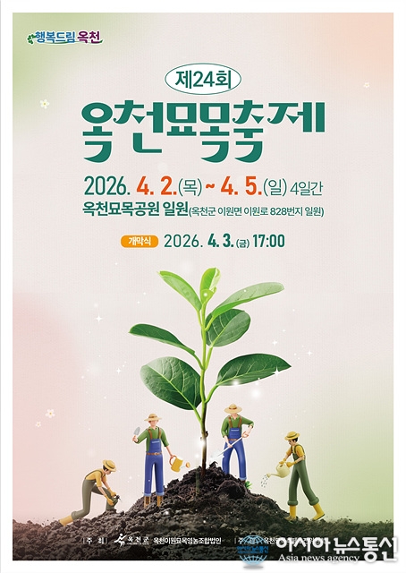 제24회 옥천묘목축제 포스터./사진제공=옥천군청 [아시아뉴스통신=장하영 기자] 따스한 봄기운이 완연한 가운데, 제24회 옥천묘목축제가 오는 4월 2일부터 5일까지 4일간 옥천묘목공원(옥천군 이원면 이원로 828) 일원에서 열린다. 올해는 축제 기간을 하루 연장해 총 4일간 더욱 풍성한 프로그램으로 방문객을 맞.. 2026-03-03