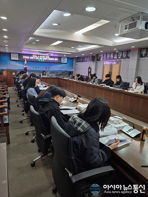 민원응대 및 휴대용 보호장비 사용법 교육./사진제공=옥천군청 [아시아뉴스통신=장하영 기자] 옥천군은 군청 상황실에서 각 관·과·소 및 읍·면 민원처리 공무원 30여 명을 대상으로 ‘민원응대 및 휴대용 보호장비 사용법 교육’을 실시했다고 밝혔다. 이번 교육은 최근 증가하고 있는 폭.. 2026-03-04