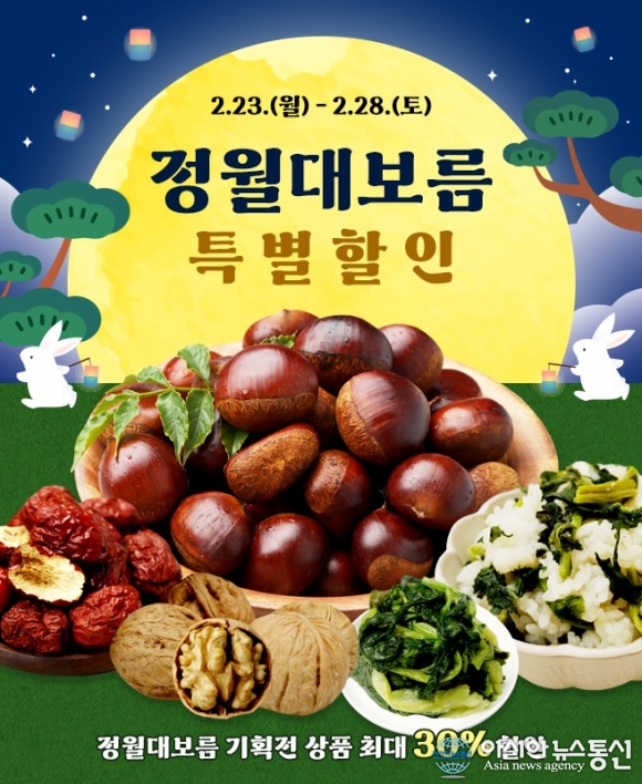 온충북 정월대보름 기획전 홍보물./사진제공=충북도청 [아시아뉴스통신=장하영 기자] 충북도 농특산물 쇼핑몰 ‘온충북’이 정월대보름 기획전과 삼겹살데이 반짝 할인전을 잇달아 개최한다. 이번 행사는 민족 고유의 명절인 정월대보름을 맞아 도민들의 장바 구니 부담을 덜어주고, 다가오는 3월 3일 .. 2026-02-24