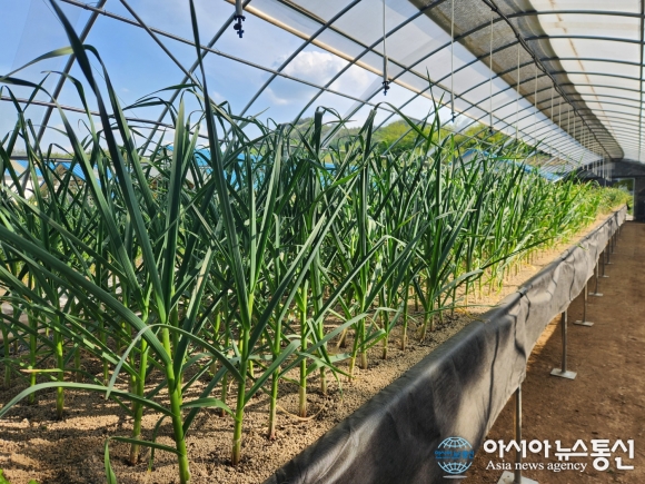 마늘 스마트팜 양액재배 전경./사진제공=충북도청 [아시아뉴스통신=장하영 기자] 충북농업기술원(원장 조은희)이 마늘 우량 종구의 안정 생산과 혹서기 고온 피해를 동시에 해결할 수 있는 ‘가변식 천창개방형 시설하우스’ 기술을 개발해 농가 보급에 나선다. 이번에 개발된 모델은 기존 광폭형 시설 .. 2026-02-24