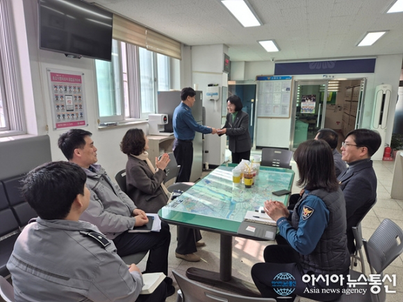 자치경찰위원회 치안 현장근무자 격려 방문./사진제공=충북도청 [아시아뉴스통신=장하영 기자] 충청북도자치경찰위원회(위원장 이광숙)는 2026년 설 명절을 맞아 도 민이 안심하고 명절을 보낼 수 있도록 지역 치안 현황을 파악하고 현 장근무자들을 격려하기 위해 청주상당경찰서 분평지구대와 청주청원 경찰서.. 2026-02-09