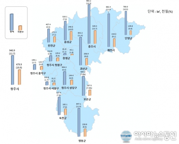 충청북도 시·군·구 면적 및 지번수 현황./사진제공=충북도청 [아시아뉴스통신=장하영 기자] 충북도는 2025년 12월 31일 기준 도내 전체 면적이 7,406㎢, 지번 수는 240만 필지로 확정됐다고 밝혔다. 시군별로는 충북도 전체 면적의 13.3%인 충주시가 983㎢로 가장 크 고, 청주시(941㎢, 12.7%), 제천시(883㎢, 11.9%),.. 2026-01-30