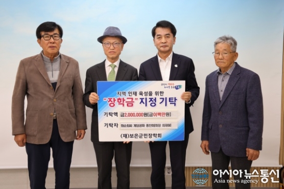 보은군, 화순최씨 계당공파 종친회 장학금 기탁./사진제공=보은군청 [아시아뉴스통신=장하영 기자] 충북 보은군은 지난 15일 화순최씨 계당공파 종친회(회장 최재철)가 군청을 방문해 지역 인재육성을 위한 장학금 200만 원을 (재)보은군민장학회(이사장 최재형)에 기탁했다고 밝혔다. 이번 기탁은 종친회 구성.. 2026-04-16