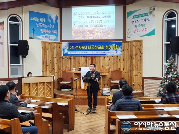지난달 29일 오후 8시 '제12차 선사모(선교를 사랑하는 모임)&태국선교회 정기총회'가 충남 공주시에 위치한 신달감리교회(김명진 담임목사)에서 열렸다. 이날 총회는 장세희 선사모 회장을 비롯해 김철한 감독, 이광성 목사, 김현웅 목사, 류병수 목사, 오경근 목사, 김명진 목사, 선사모 회원 등 100여 명이 참석한 .. 2024-12-05